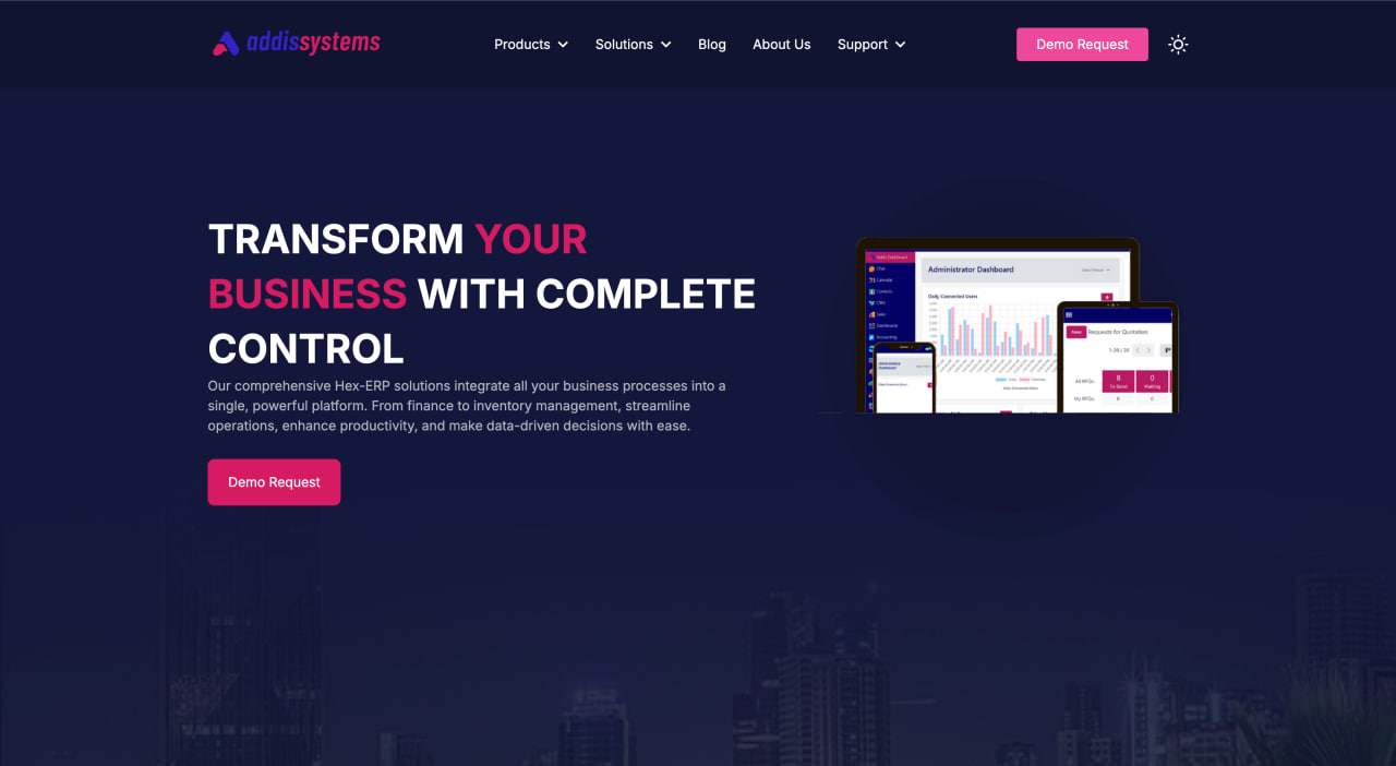 Built a scalable company website showcasing Addis Systems products and services, allowing users to explore offerings and request demos for ERP and related services.